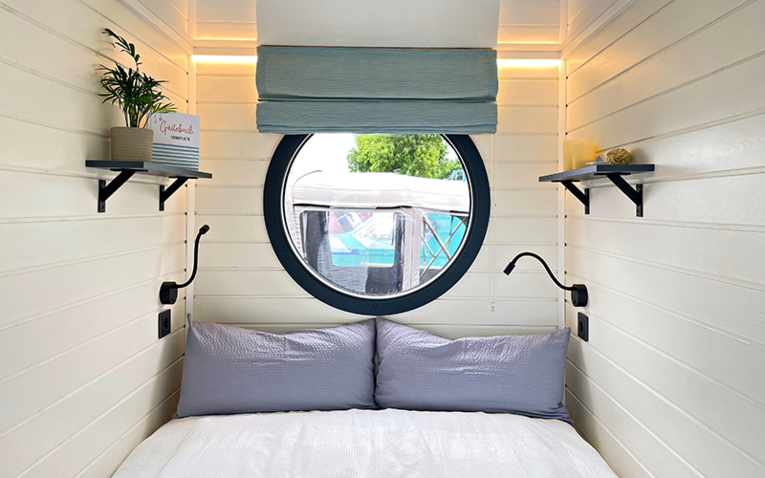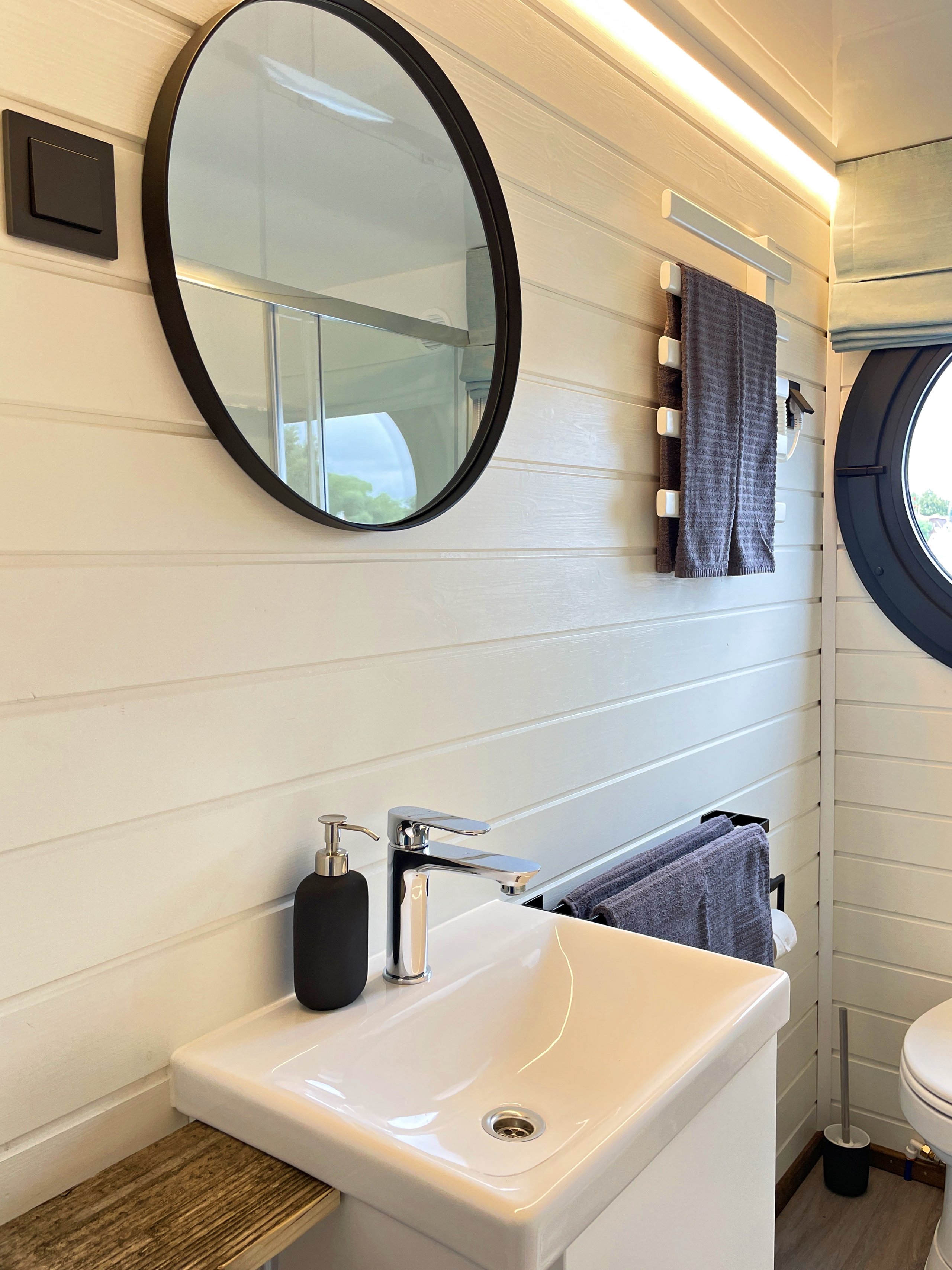 Unser Hausboot "bötje" verstärkt seit Juli 2023 unsere kleine Flotte und ist vom Bau und Stil etwas anders als unsere ersten beiden Hausboote, die englischen Narrowboats sutje und lütje. Bötje wurde in Litauen gebaut und ist etwas größer und im Innenraum großzügiger als seine beiden Vorgänger, ebenfalls ausgelegt für zwei Personen. Auf ca. 30 Quadratmetern Innenraum verfügt bötje ebenso über eine maritime Atmosphäre und jeglichen Komfort, sodass ihr bei eurer Auszeit vom Alltag auf nichts verzichten müsst. Von W-Lan, Sat-TV, Klimaanlage/Heizung, Badetreppe, Musikanlage bis hin zu einer gemütlichen Koje, einem begehbaren Bad und einer kleinen Wohnküche bieten wir eine Unterkunft der besonderen Art.